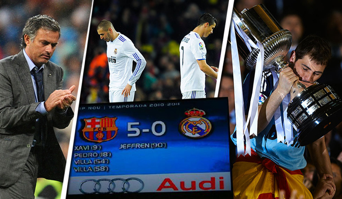 Nhưng chỉ vài tháng sau khi viết lại lịch sử với Inter ngay tại Camp Nou, Mourinho trở lại đó trong trận Clasico đầu tiên với Real và nhận một thất bại nặng nề. Cú “bàn tay nhỏ” 0-5 trở thành nỗi ám ảnh, nối dài cơn ác mộng của những HLV mới tại Bernabeu.