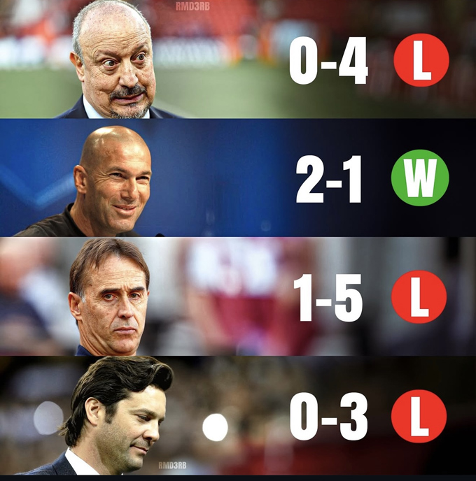 Tệ hại nhất phải kể đến Rafa Benítez. Sau khởi đầu không tệ ở mùa hè 2015, Real Madrid của ông lần lượt mất chuỗi bất bại trước Sevilla và rồi thảm bại 0-4 trước Barcelona ngay tại Bernabeu (21/11/2015). Trận thua ấy khiến Benitez mất ghế chỉ sau hơn một tháng rưỡi.