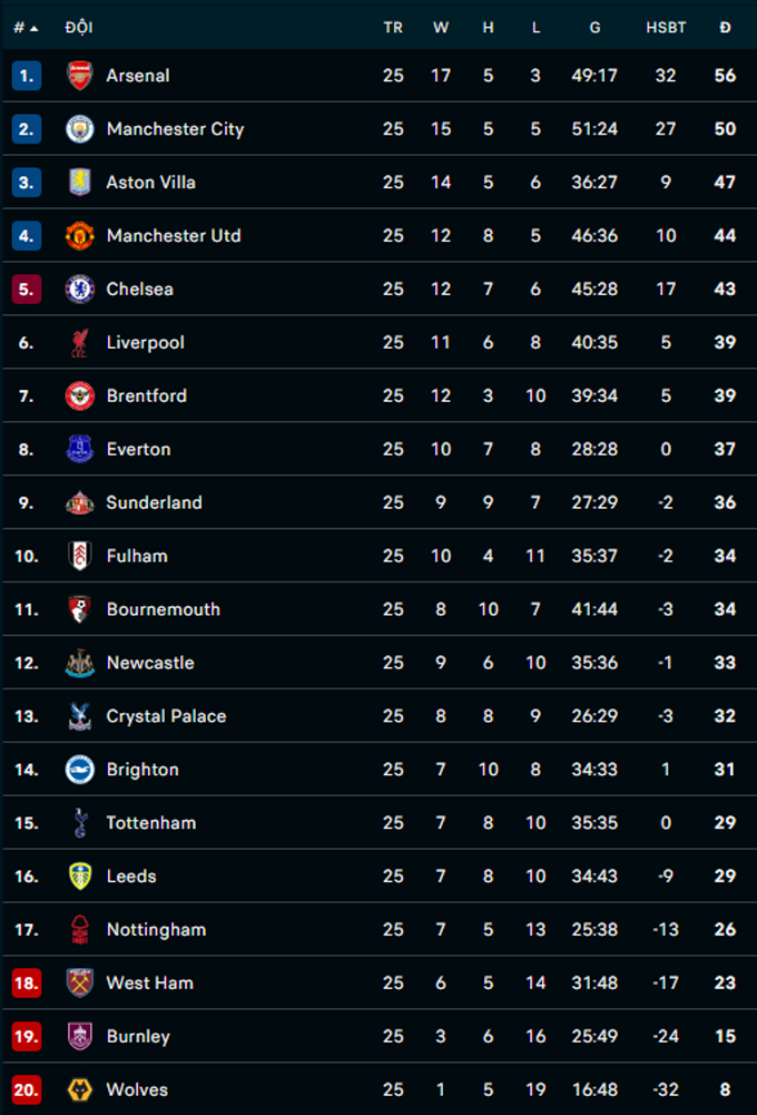 Kết quả thật mỹ mãn khi Igor Thiago lúc này đang là chân sút lợi hại thứ 2 của Ngoại hạng Anh 2025/26 với 17 bàn thắng. Kelleher khiến người ta quên luôn Flekken khi sở hữu 6 trận giữ sạch lưới. Và nhờ tài “liệu cơm gắp mắm” của ông thầy Andrews, Brentford tận dụng tốt việc các đội bóng lớn thiếu ổn định để giành những điểm số quan trọng, qua đó vươn lên mạnh mẽ trên BXH.