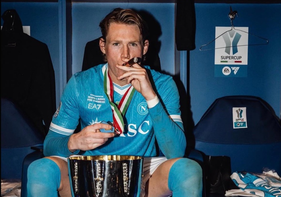 Đặc biệt, một bức ảnh ghi lại khoảnh khắc McTominay tạo dáng một mình bên cạnh chiếc cúp Siêu cúp Italy, trên tay vẫn cầm xì gà, đã nhanh chóng được lan truyền rộng rãi và thu hút sự quan tâm lớn từ người hâm mộ.
