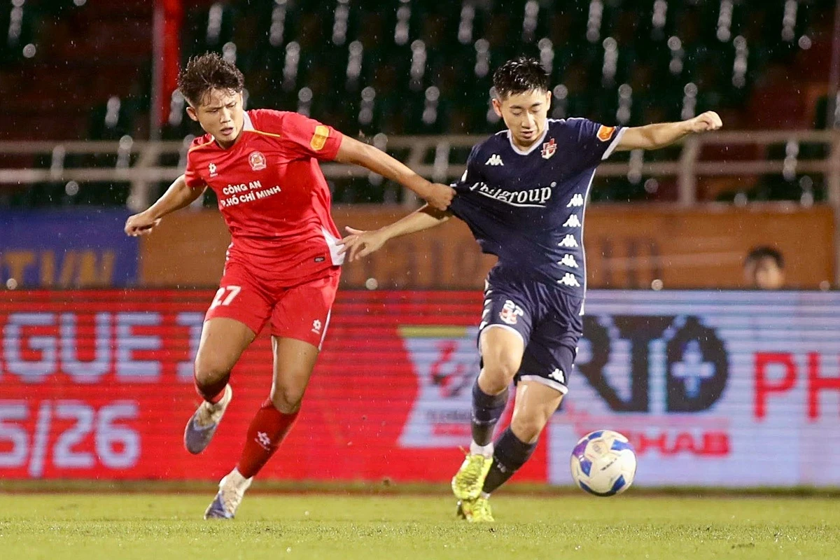 Tiền đạo trẻ Bùi Văn Bình (áo đỏ) từng là Vua phá lưới Giải hạng nhất 2023/24 với 11 bàn thắng khi khoác áo CLB Bà Rịa – Vũng Tàu (nay là CLB TP.HCM)