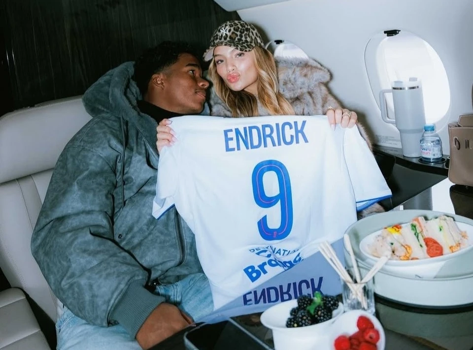 Anh đến Pháp cùng người vợ Gabriely Miranda khi cặp đôi chia sẻ những khoảnh khắc về CLB mới trên mạng xã hội. Endrick cùng vợ bay chuyên cơ đến Lyon an toàn, thậm chí chụp ảnh tạo dáng bên chiếc áo mới của Lyon từ khi chưa hạ cánh xuống Pháp.