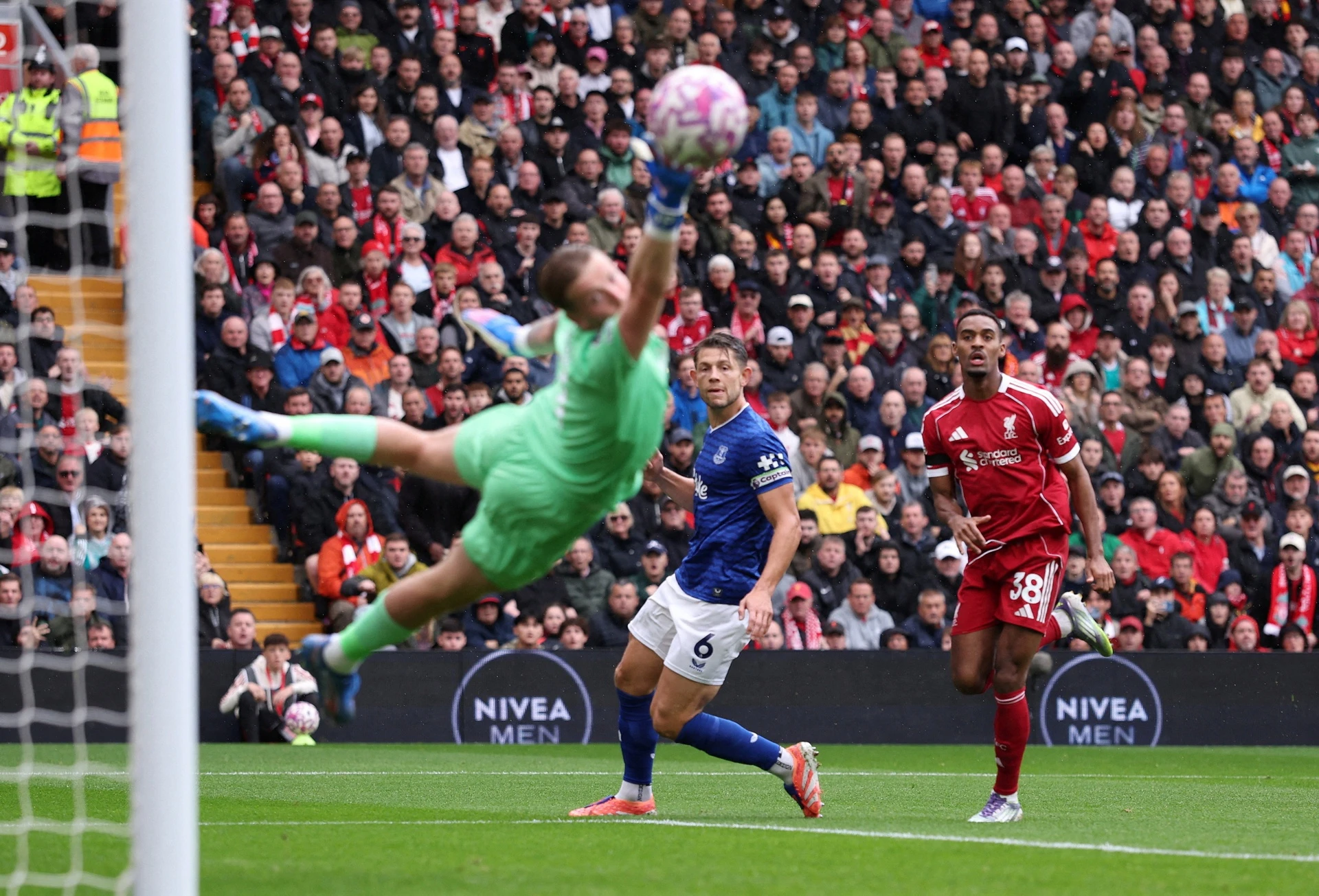 Gravenberch vừa ghi bàn trong trận derby Merseyside.