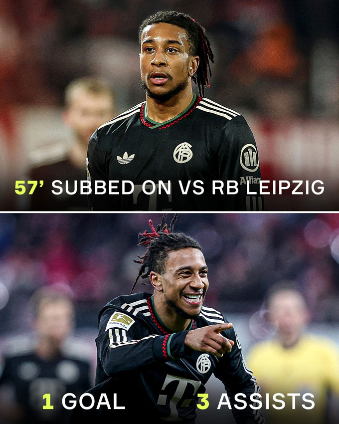 Olise trực tiếp tạo nên 4 bàn thắng và giúp Bayern không chỉ gỡ hòa mà ngược dòng giành chiến thắng ấn tượng. Điều đặc biệt là tất cả chỉ diễn ra trong hơn 30 phút.