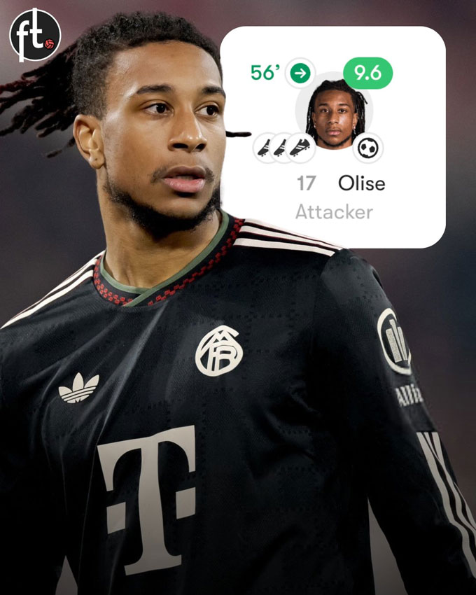 Theo đó, Olise vào sân ở phút 57 và tới phút 67 đã có pha kiến tạo giúp Harry Kane nâng tỷ số lên 2-1. Tới phút 83, lại là Olise chuyền bóng để Jonathan Tah ghi bàn nâng tỷ số lên 3-1. Phút 85, anh kiến tạo cho Pavlovic và tới phút 88 đã tự ghi tên trên bảng tỷ số để ấn định chiến thắng 5-1 cho Hùm xám.