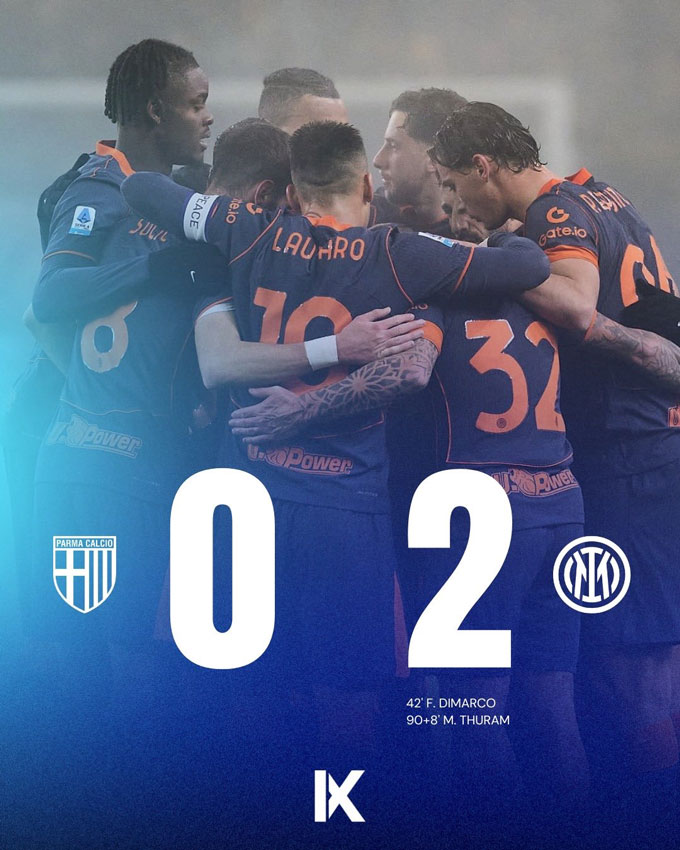 Nhưng các cổ động viên Inter không phải tiếc nuối quá lâu bởi đến phút 90+8, Marcus Thuram đã kịp ghi bàn ấn định chiến thắng 2-0 cho đội khách. Với 42 điểm/18 trận, Inter củng cố vững chắc ngôi đầu bảng Serie A, hơn AC Milan (mới đá 17 trận) và Napoli 4 điểm.